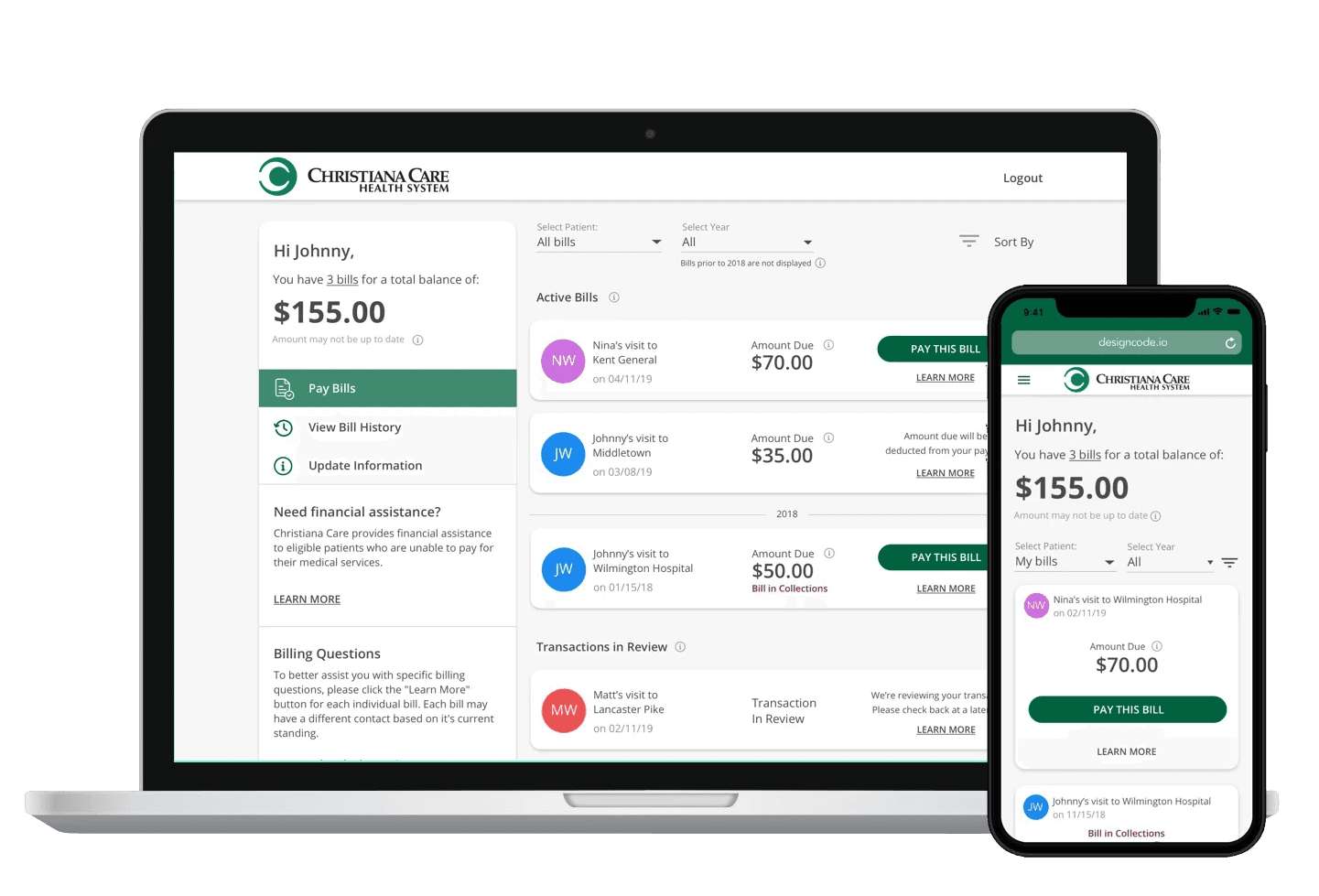 Led UX/UI and product strategy for a mobile-friendly portal that helped hospital patients and guarantors view and manage multiple medical bills with clarity and ease.