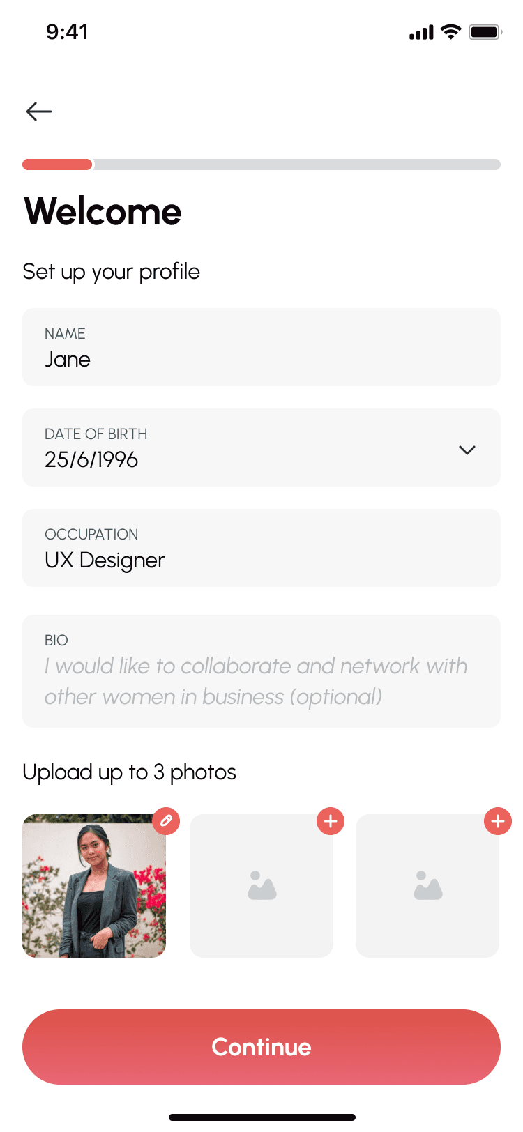 Our goal was to create a mobile app that felt warm, actionable, and specifically tailored to women in business - with smart onboarding, clear user flows, and tech-enabled discovery and connection.