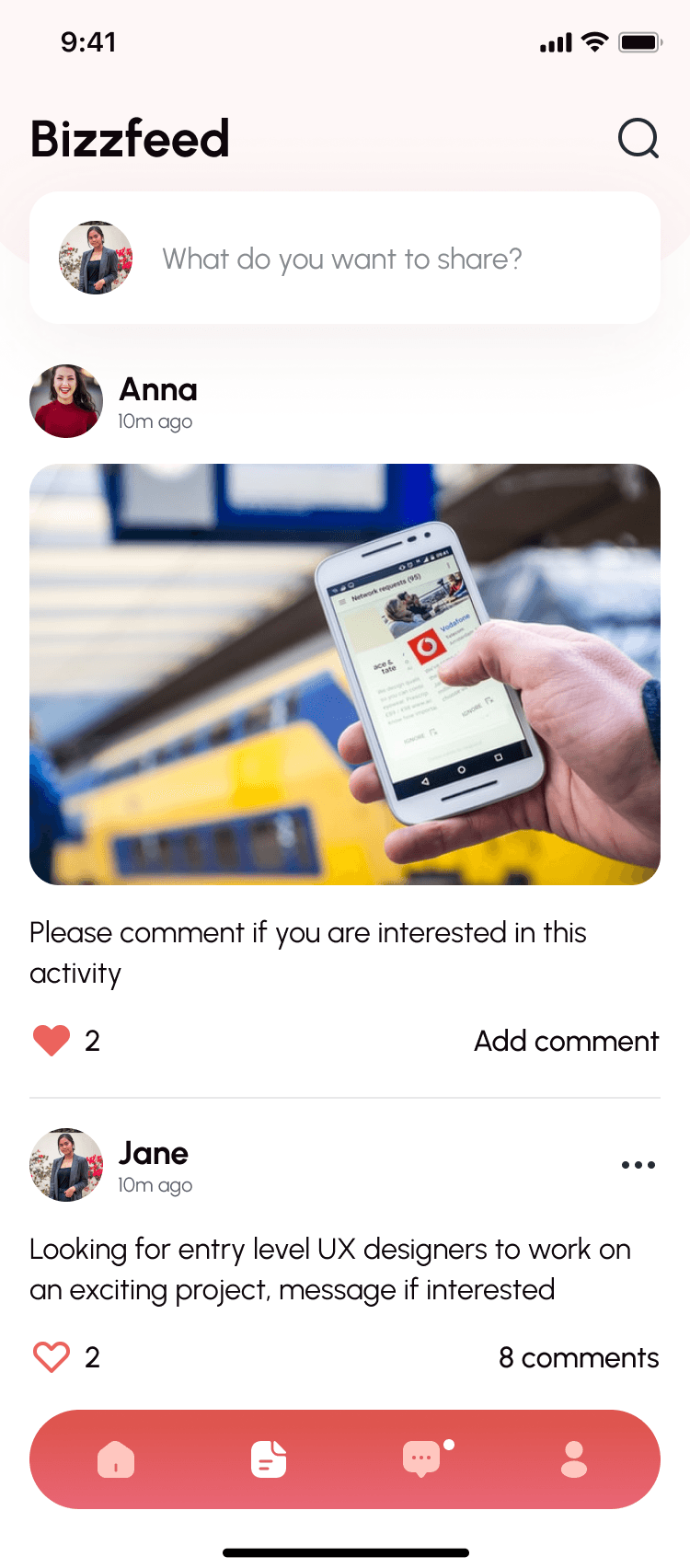 A social feed where users can share what they’re building or what they need support with (e.g. hiring help, launching a new idea). Think of it as a lightweight LinkedIn + support forum.